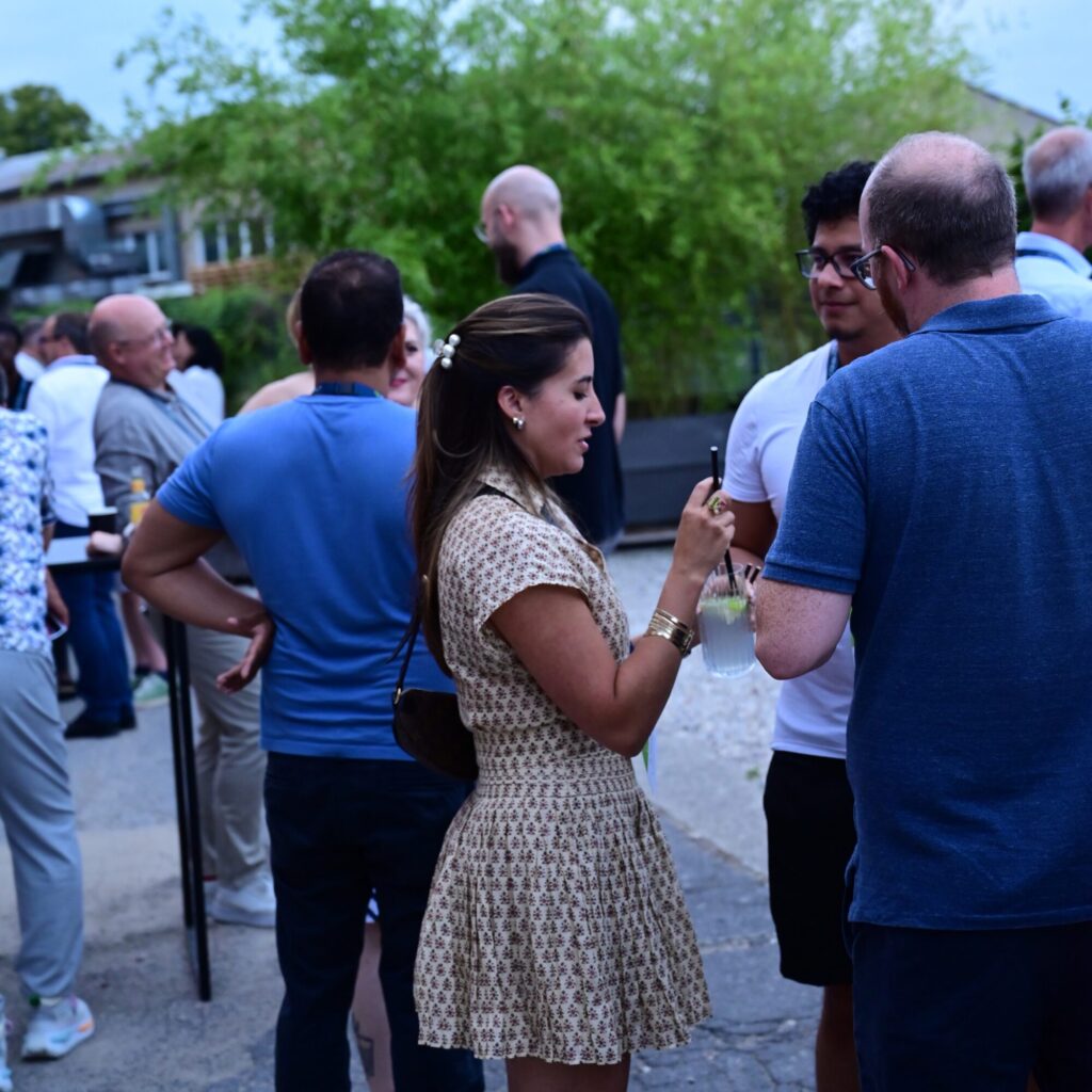 Colleagues could enjoy cocktails, play beer pong or table soccer, or capture memories at the photo booth. With perfect summer weather, many gathered in the outdoor area to relax and connect.